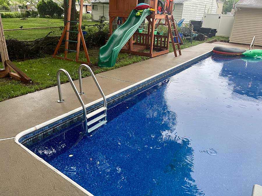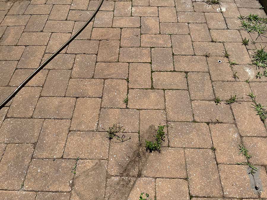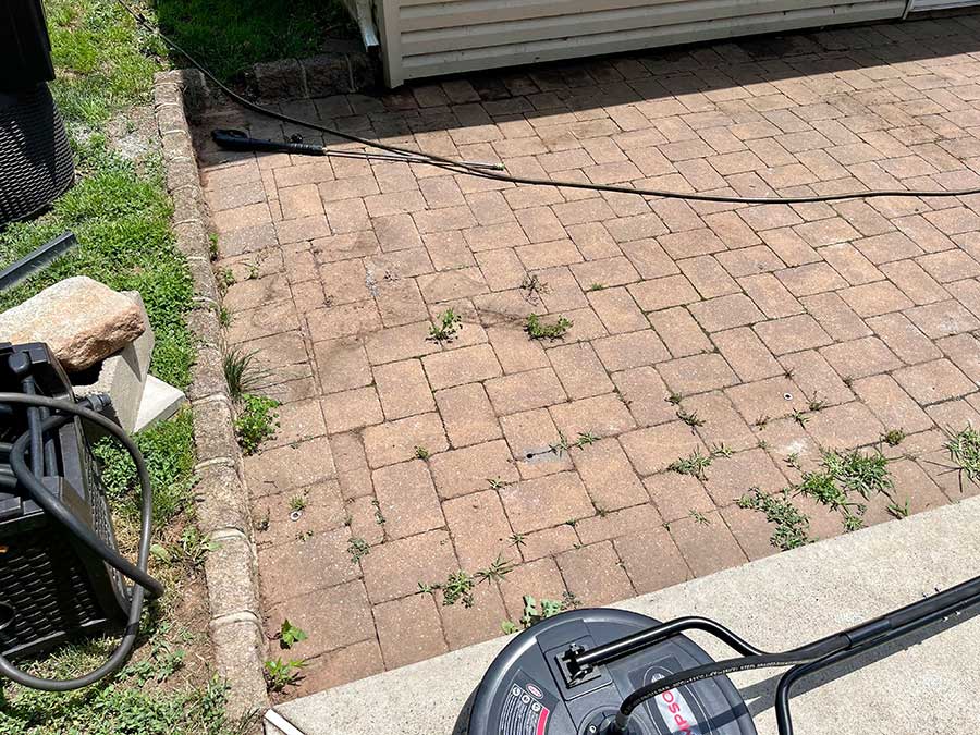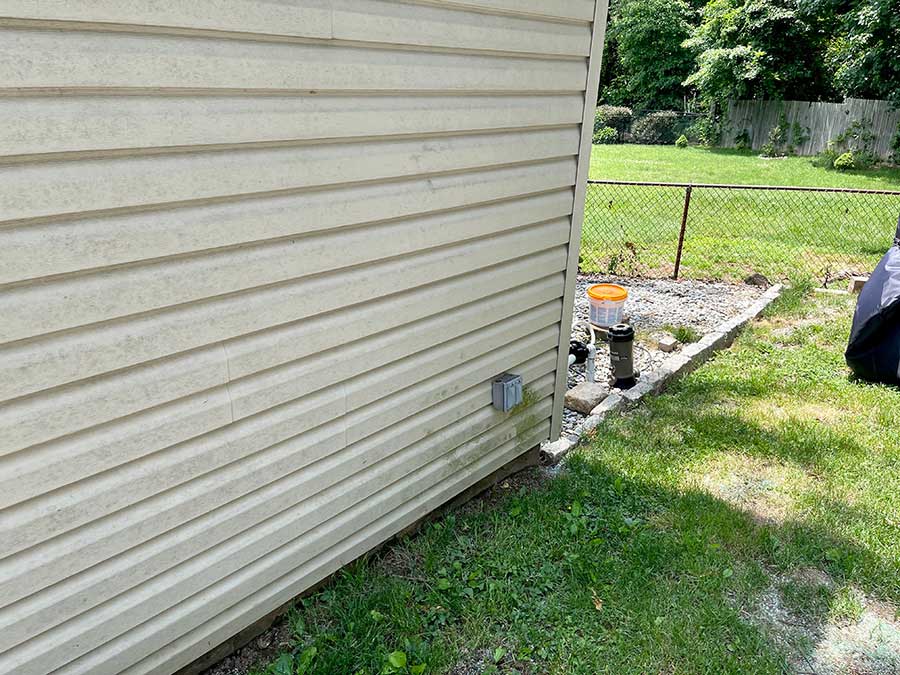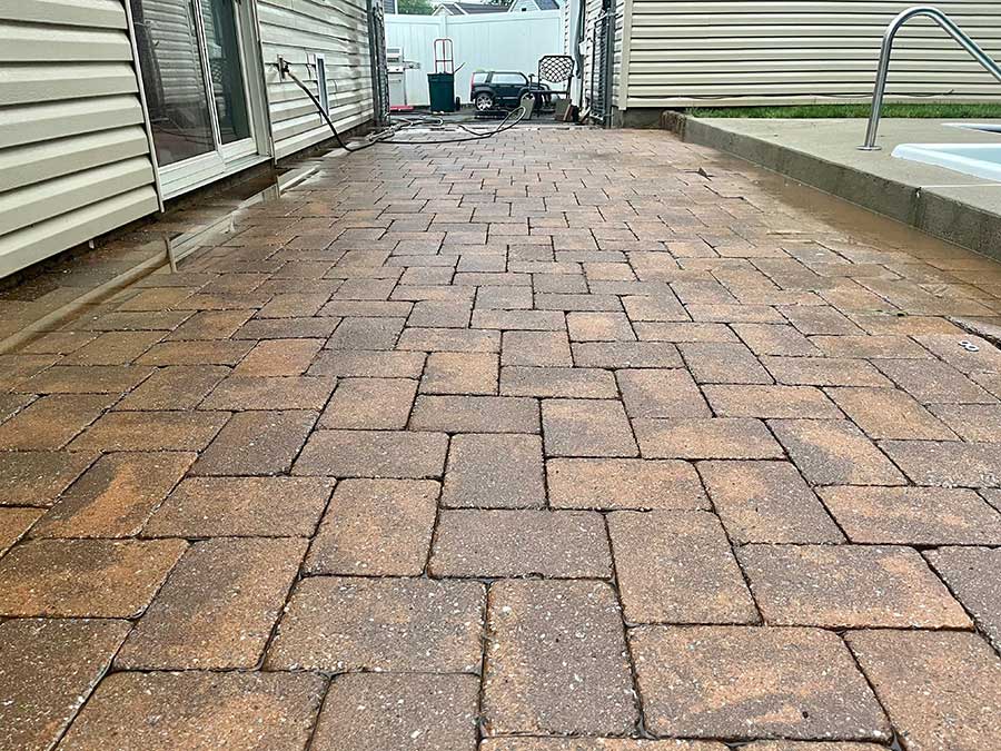To start, there were many different surfaces and methods used to touch up a property in Edison, NJ. We came out to find algae growing on the home siding, dirty pavers with weeds growing through, a stained pool area & portions of the fence that needed a refresh. We treated the moss and algae on the siding by soft washing it with a thorough rinse. We were able to surface clean the entire poolside area, and we post-treated. After pre-treating and surface cleaning the pavers, I hand-picked the remaining dead weeds to get us from 94% to 100%. We aim to cover every base on every job. Final rinse & the day is done.