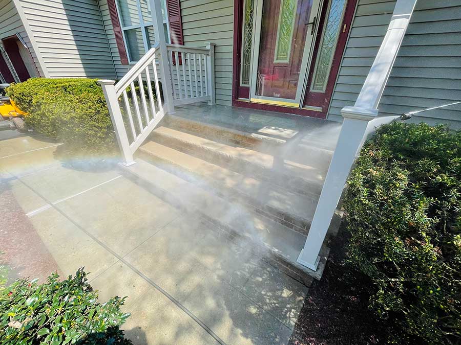 A good customer intended to host a summer get-together. She hired us to powerwash her main entryway and perform a paver and deck cleaning for her rear entertainment area. We started in the back area by power washing the customer's Trex deck to perfection board by board. Following that, we treated the pavers and front entryway to break down any heavy dirt, mold & algae. We were able to get all surfaces clean from top to bottom.