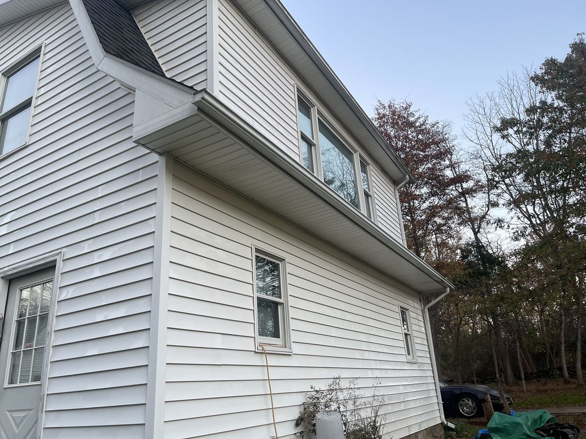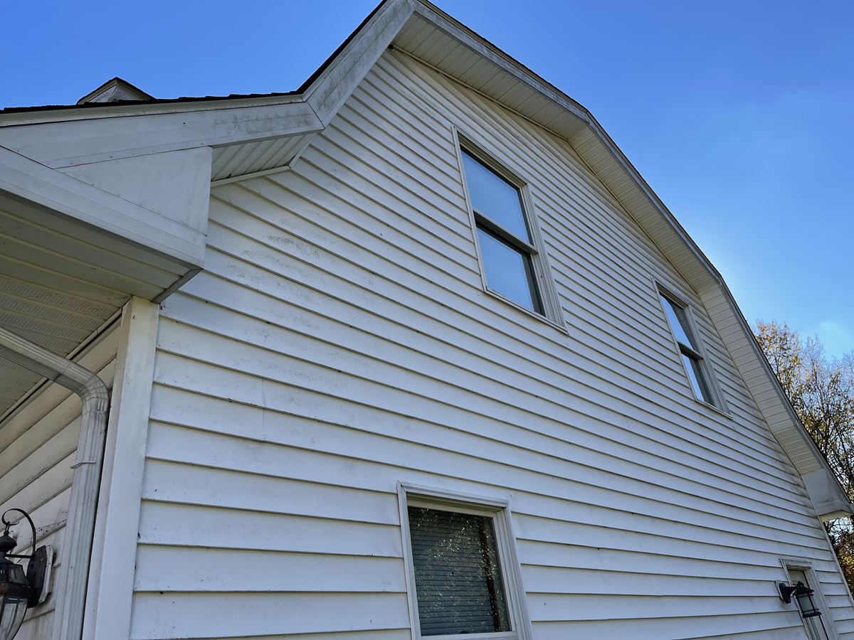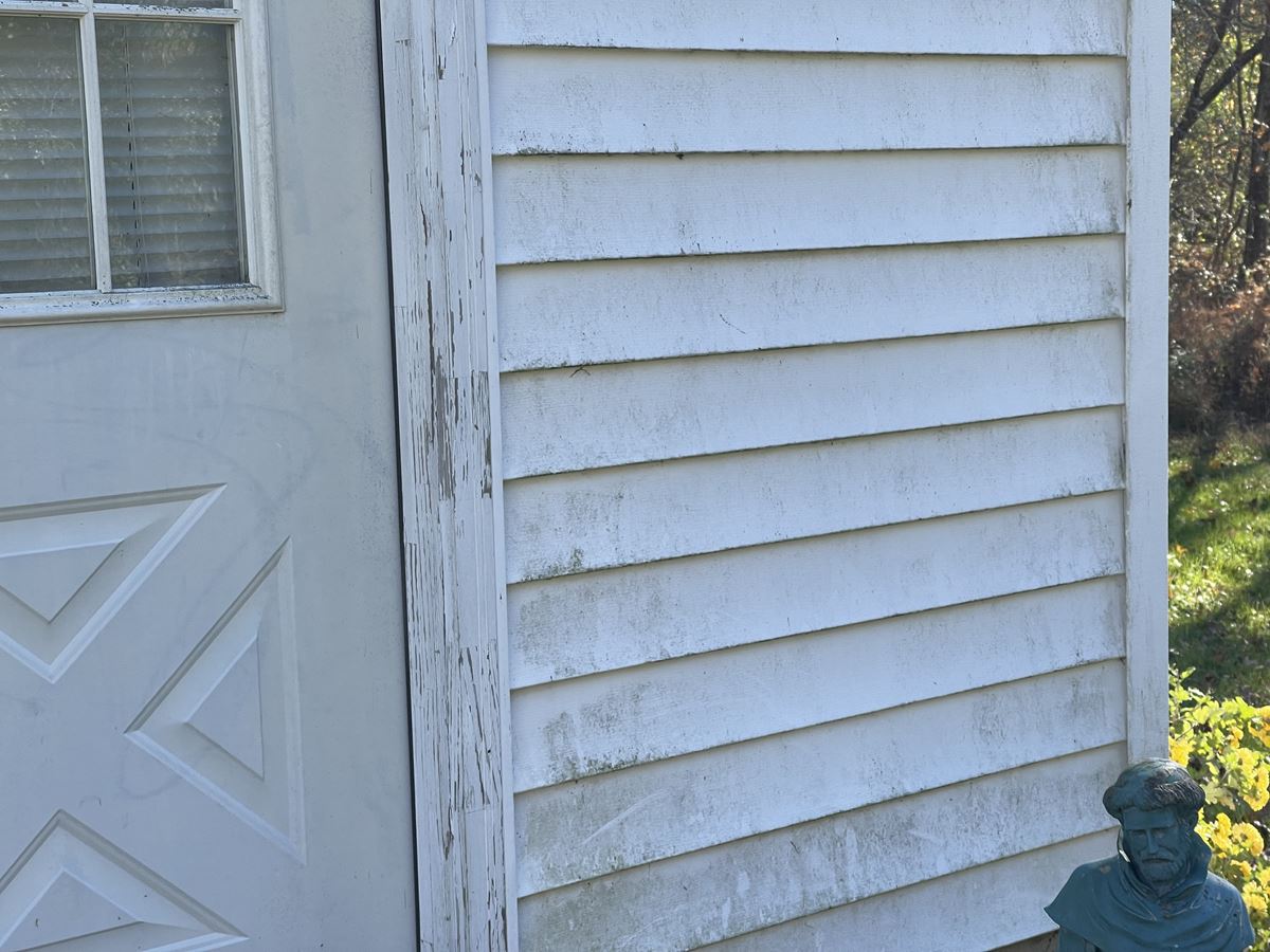 The last job of 2021 came from a referral from a job we did in South river NJ. Customer called us back & asked us to clean her parents house. Customer refused the quote process & had us bring our van to quote and do the job the very same day. They didn't need to get a second price we took care of them. There are close up pictures to show you the chips in the paint that didn't get worse following our entire soft wash treatment. We use the proper PSI for every surface automatically, keeping the integrity of any exterior surface. We chemically treat the surface without harming any surrounding vegetation. The garage was next to a home grown tomato and pepper garden. Following the treatment we Soft-wash the surface to perfection. Two story home and garage top to bottom house wash, the HyperClean way.