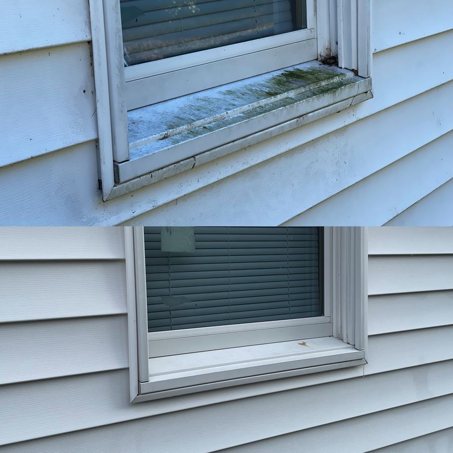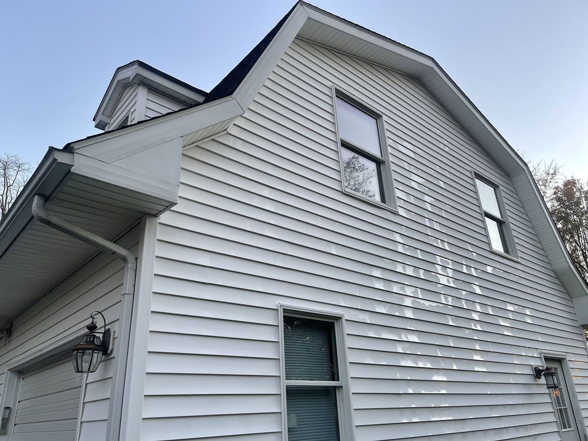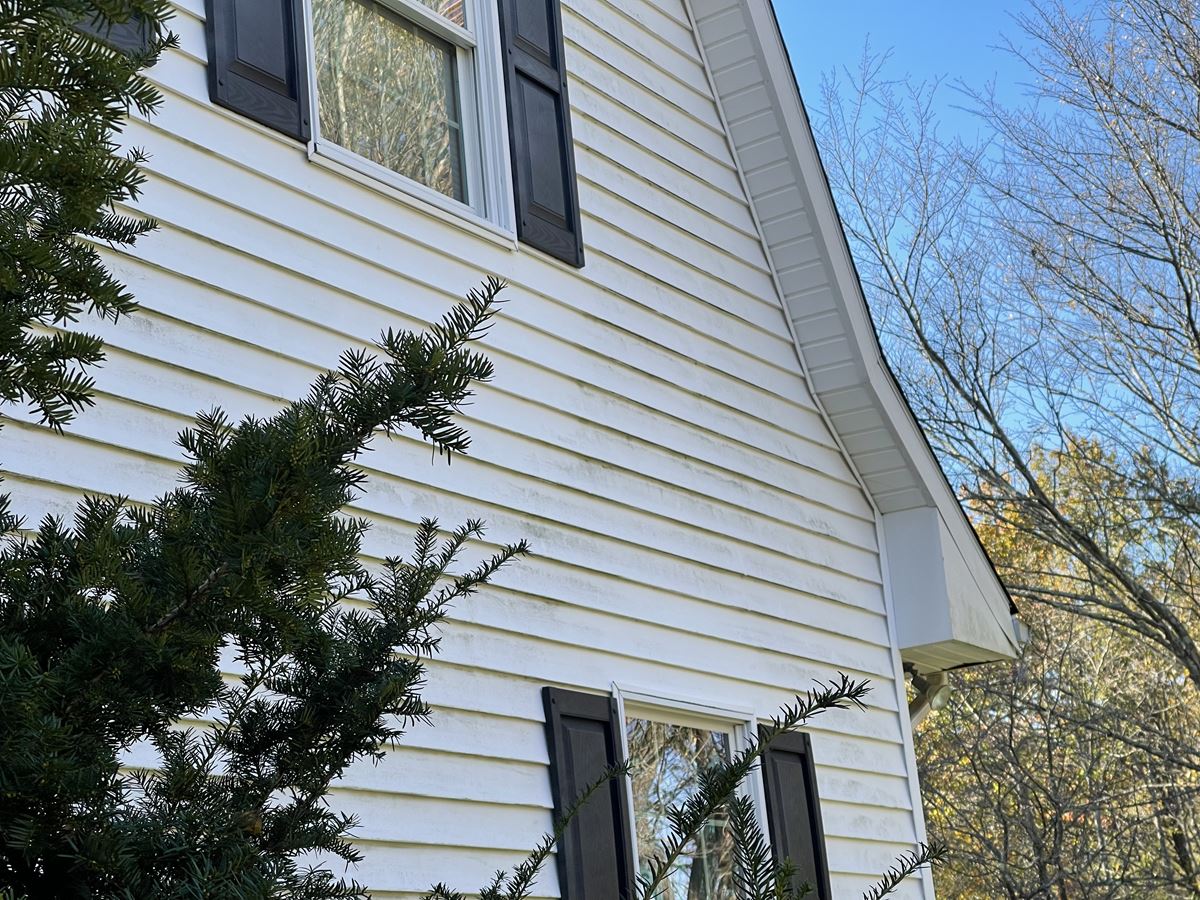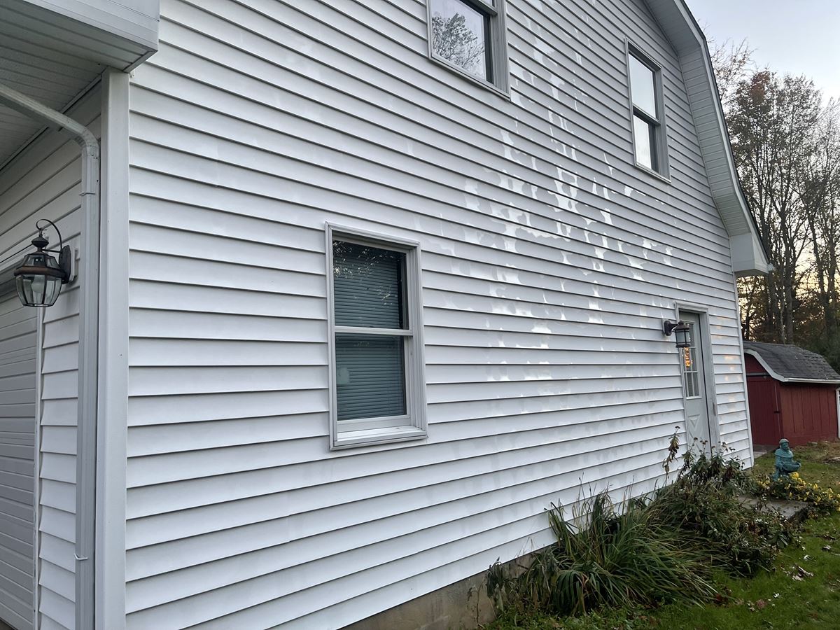 The last job of 2021 came from a referral from a job we did in South river NJ. Customer called us back & asked us to clean her parents house. Customer refused the quote process & had us bring our van to quote and do the job the very same day. They didn't need to get a second price we took care of them. There are close up pictures to show you the chips in the paint that didn't get worse following our entire soft wash treatment. We use the proper PSI for every surface automatically, keeping the integrity of any exterior surface. We chemically treat the surface without harming any surrounding vegetation. The garage was next to a home grown tomato and pepper garden. Following the treatment we Soft-wash the surface to perfection. Two story home and garage top to bottom house wash, the HyperClean way.