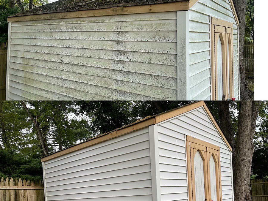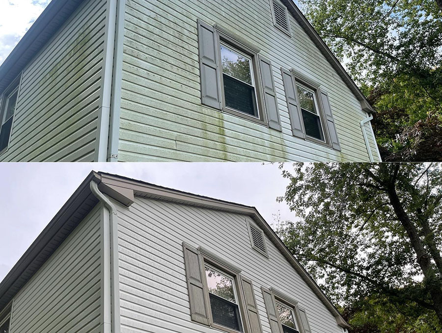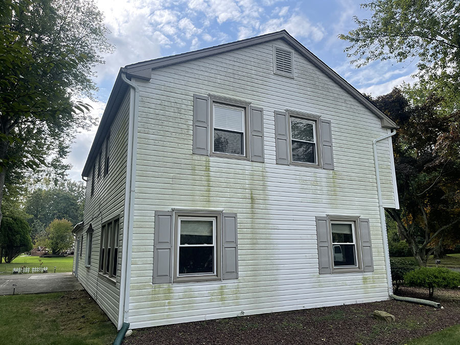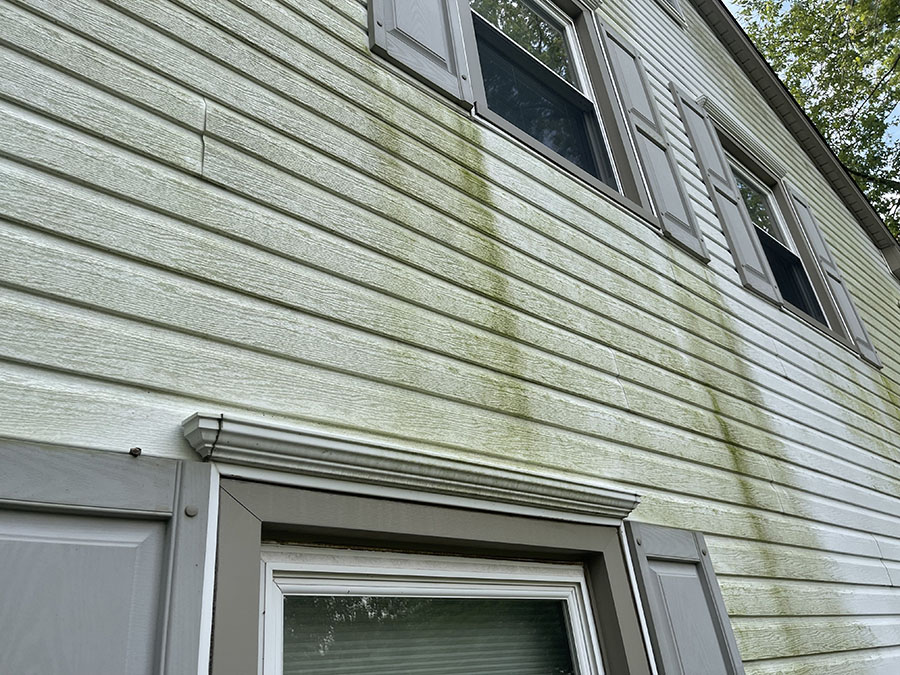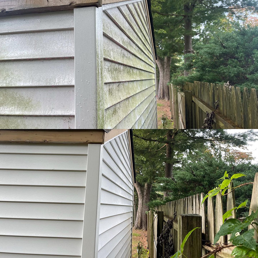 We always post how a property looks right after a cleaning & today, we are taking a different approach. We chemically treated this entire property almost a YEAR ago. This method of power washing is the most effective and longest lasting. This is also the ONLY way we do business for siding/house washing. Our choice of chemicals is safe in every aspect, and the results show long-term. YOU'RE NEXT. The first three images are from 3/16/22 (9 months in) & the other pictures are from the day of service on 6/4/21.